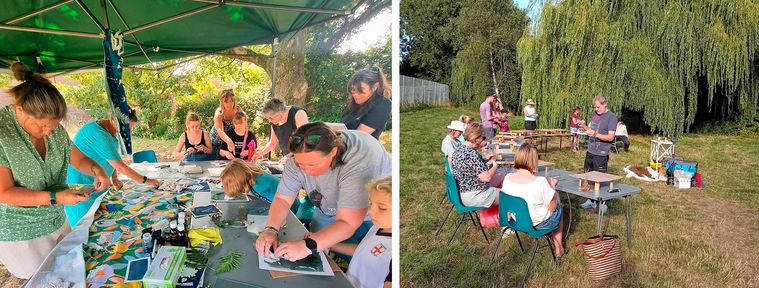 Great Mead has had a very active couple of months of workshops and events. These all coalesce around piloting activity and exploring the potential for future development including: Act to Adapt (climate adaptation) workshops in partnership with Somerset Wildlife Trust; a Family Feast picnic as part of the Sustainable Food Somerset Food Trail; visual arts, willow weaving and botanical sun printing workshops; and early years outdoor summer activity, facilitated by Chard Community Hub.