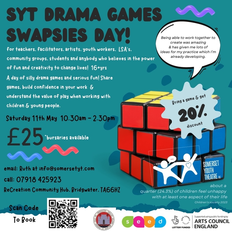 Hi everybody. Selina here from Somerset Youth Theatre cic. Are you stuck playing the same ole Drama games and team building exercises when teaching, delivering workshops or running rehearsals? Do you want to freshen up your practice and fancy a day of belly laughs and fun?